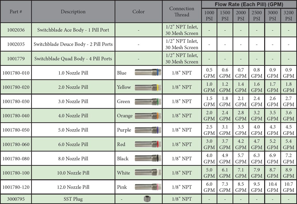PERFORMANCE – Complete jobs faster with more runtime and less downtime. A combination of (1), (2), or (4) 0° solid stream nozzles provide greater impingement, allowing you to cut through soil faster while using dramatically less water. The Switchblade’s long, linear flow path is ideally suited for trenching applications.