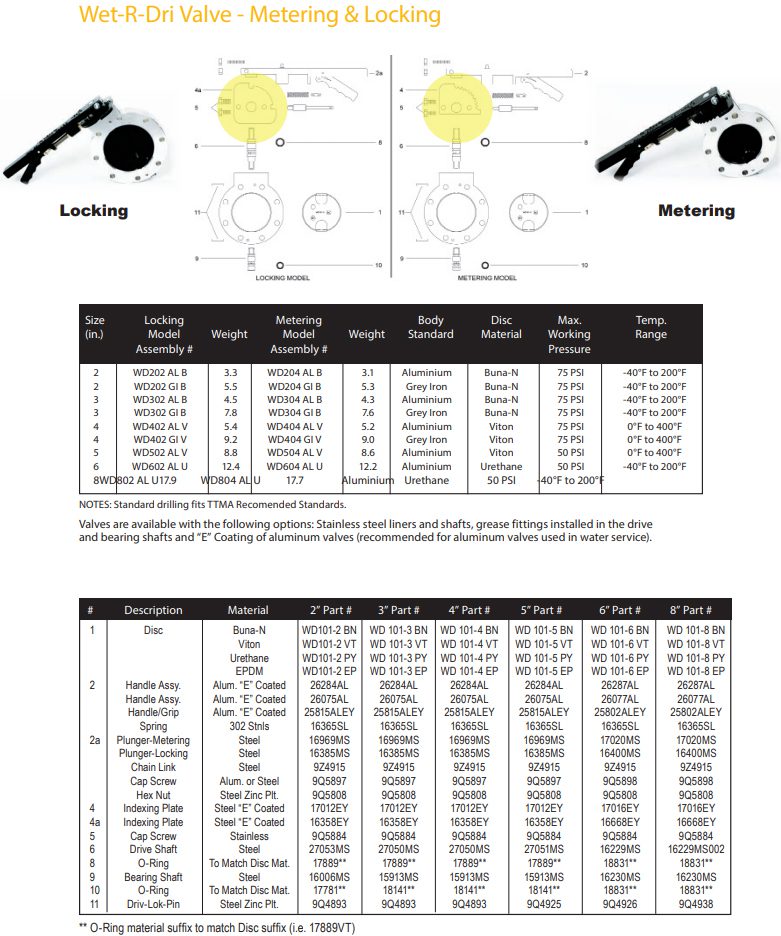 The Betts Wet-R-Dri valve is designed for handling liquid, gaseous or dry products and is available in a variety of sizes and models. This space saving valve is lightweight, easily maintained and has a positive stop in the open and closed position. The Detent model has a detent spring and ball which assist in holding the disc in the open and closed position.